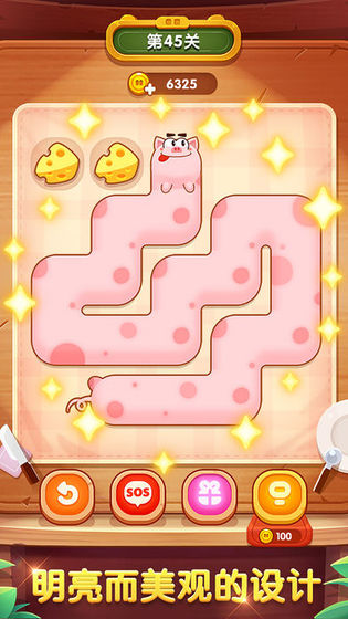 一口吃光光是一款益智趣味类手游,游戏中玩家将操控一只贪吃的猪猪在迷宫般的地图前进吞吃,将地图上所有的食物吃光获得分数,时间花的越少分数就越高哦。