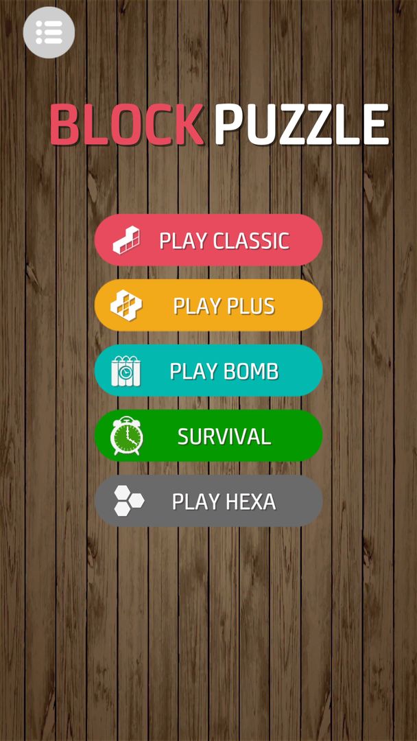 游戏包含五种不同的模式,包括:(经典模式/大放块模式/炸弹模式/生存模式/六边形模式).