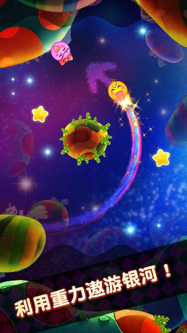 超级银河宝贝是一款布满爱与勇气的超精致唯美卡透风格的单机休闲益智类游戏。游戏讲述在银河系中的一颗磁力星球受到外星武力的侵犯,多难难后的磁力星球处处充斥着危机。男主想尽办法拯救身处险境的女主。游戏通过摇杆来控制男主的方向,让它吃到更多的星星,速度越快飞出往的间隔越长,如何利用物理气力,加上正确的操纵,克服种种障碍,最后到达女主的身边?