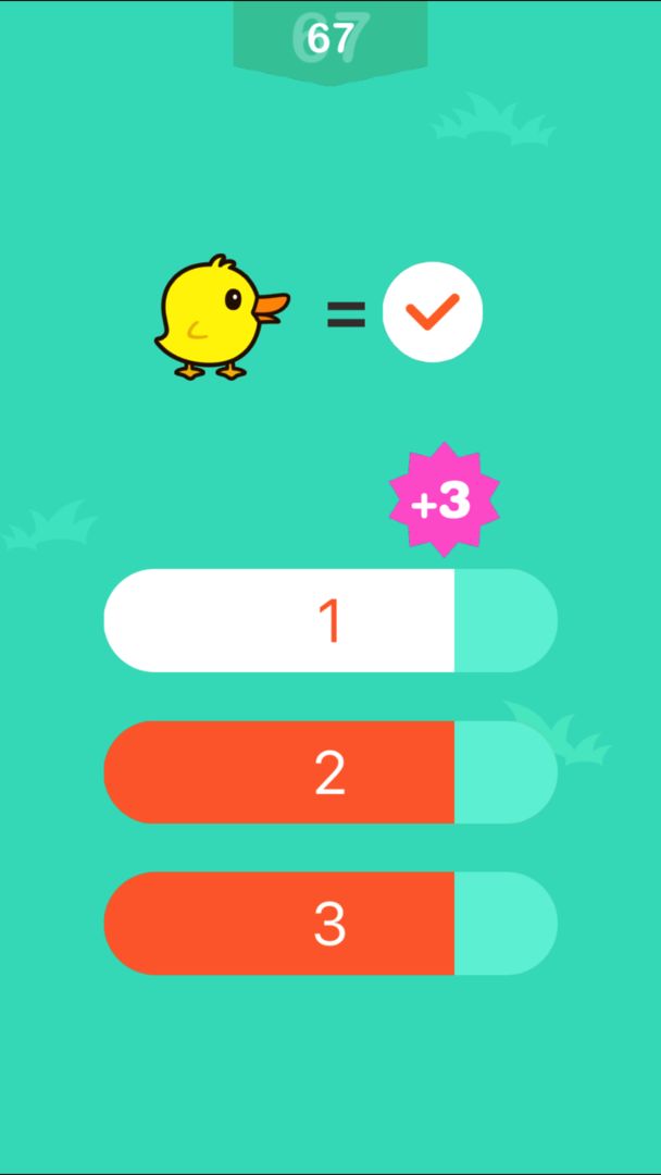 2.小鸭子走完后,会随机提问你其中的某种小鸭有几只,例如“向左走的小黄鸭=?”(你不仅要留意题目中小鸭子的颜色而且要留意它的方向!)