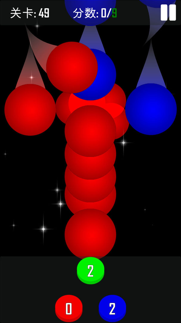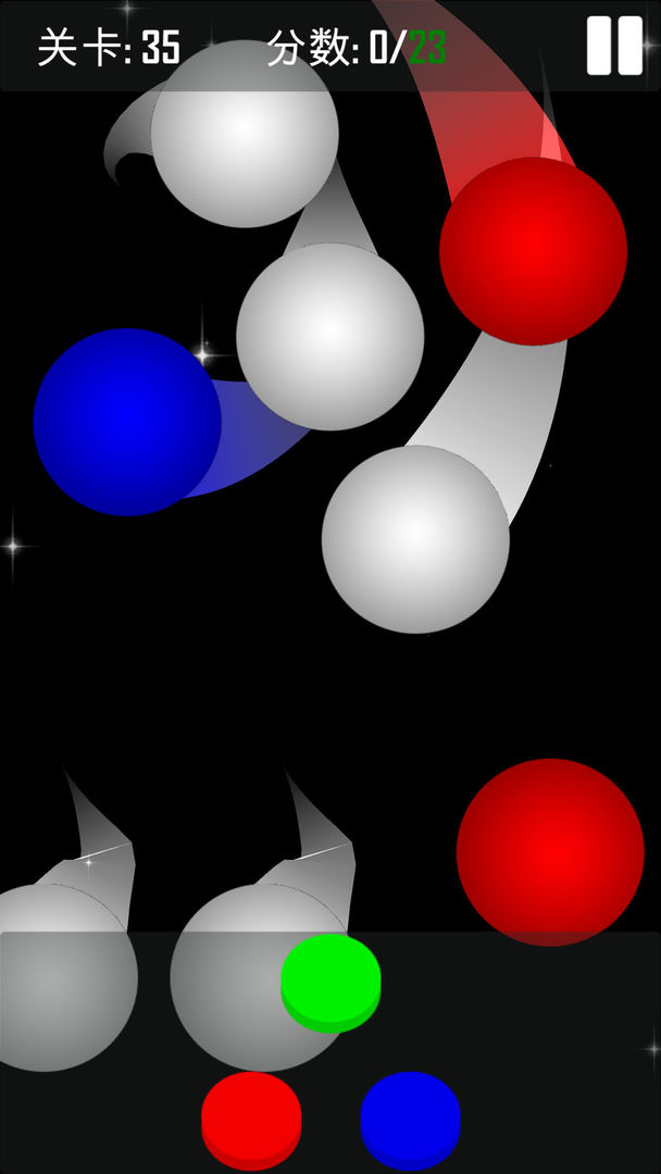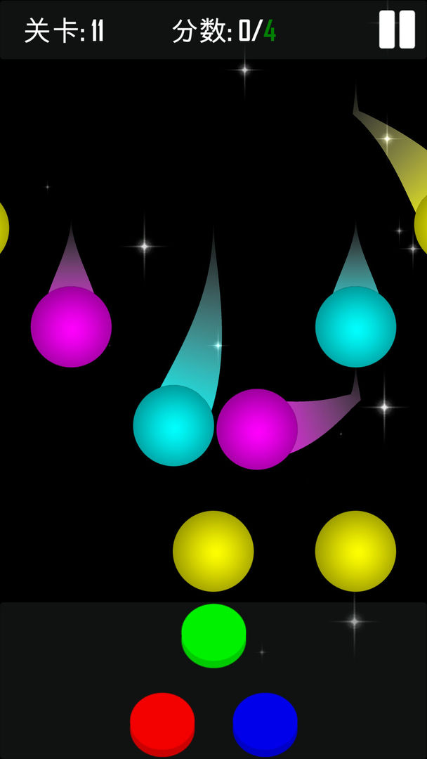 在元色上方空缺的地方,左右滑来控制颜色球们移动。