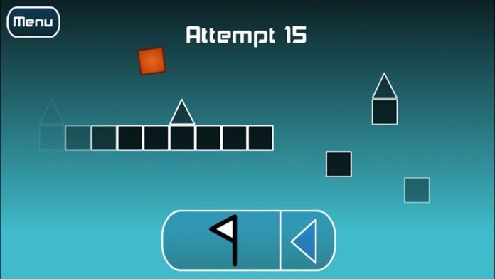 游戏控制只有一个,触按屏幕跳跃,引导你的橙色方块跳过三角形并跳到方块上以到达关卡终点。任何失误都会导致立即死亡并重新回到关卡开头开始。游戏搭配了一首动感的音乐,你会很快上瘾的!