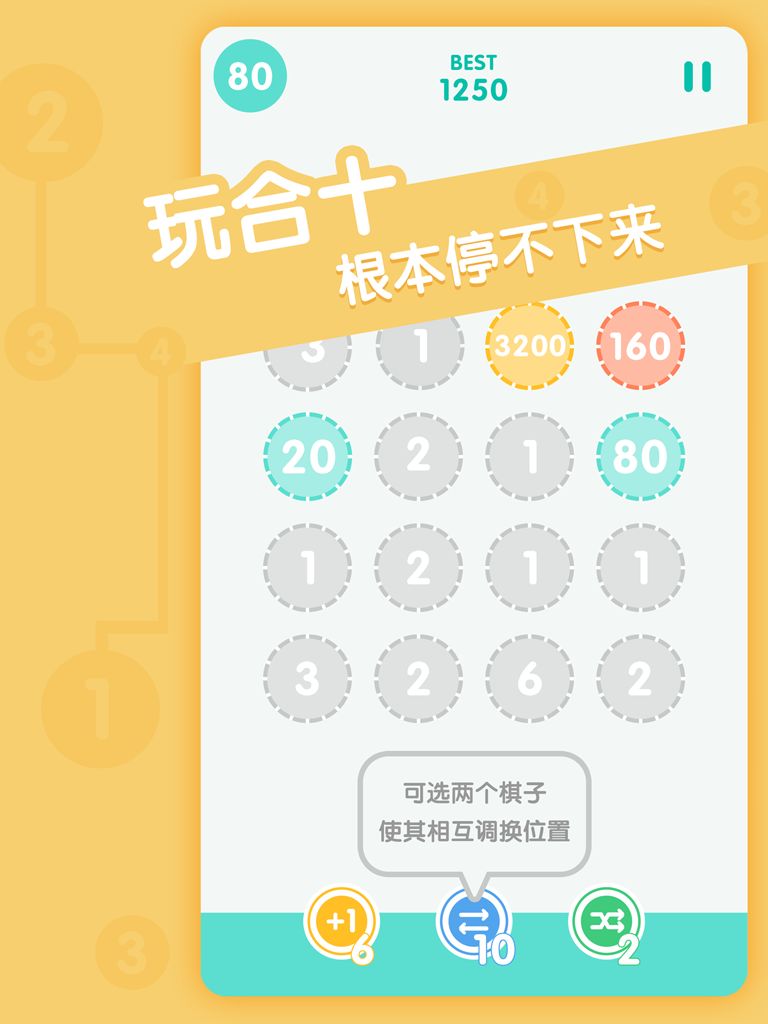 10与10相连变成20,20与20相连变成40,以此类推...