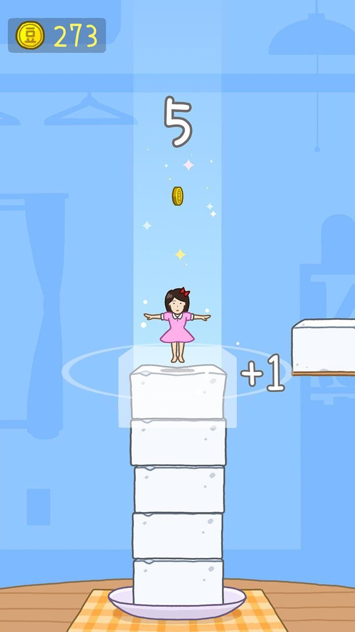 游戏画面精致,全新的游戏玩法给你带来独特刺激的游戏体验,通过合适的节奏点击屏幕让豆腐姑娘起跳站在搭过来的豆腐块上,然后尽可能地拿高分吧,多种多样的关卡等你挑战,随着游戏难度的提升豆腐块的速度也会逐渐加快,寻找到合适的方式然后让豆腐块越积累越高吧。