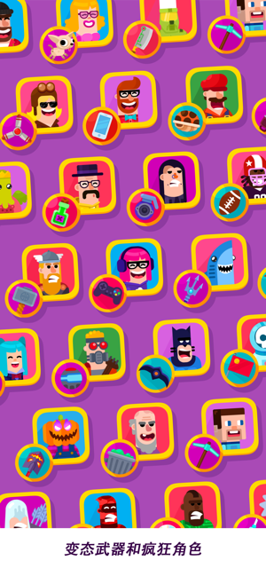 游戏画面独特玩家能在游戏中感受全新的游戏乐趣,独特的游戏内容多种多样的游戏模式让你在这个独特的世界种不断射爆。全新的道具自由选择,每种武器都有自己的用途,就算是一个小小的苹果也能让你击败敌人,除了武器之外更要超多的角色等你获得,不断解锁这些角色吧,然后挑一个趁手的武器开始加入这场狂欢。