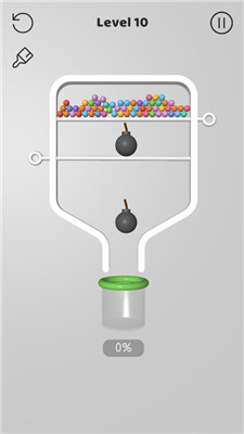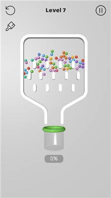 1.玩法相当简单,玩家的最终目的就是把瓶中的彩色小球尽数放入到管道口中。