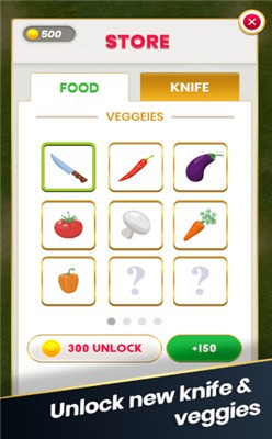 3.收集到的金币数额多,不断解锁出来新刀具,使用了之后玩家可以体验不一样的切菜体验。