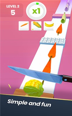 蔬菜切切乐是一款切蔬菜的休闲益智手机小游戏,玩家是一名蔬菜切割高手,其实是一名熟练的流水线工人,流水线上有非常多的蔬菜等待玩家切割,一定要像那些大厨一样,切出来的蔬菜片必须要特别的薄,才会得到领导的认可,不过也有很多恶人给自己下绊子,传送带上居然有多余的东西,千万不要切到钢板。