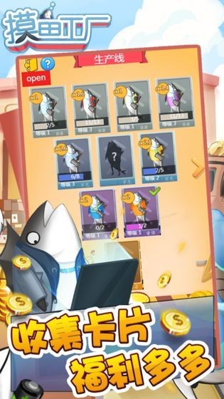 1、游戏画面风格非常搞笑,看着一条条咸鱼认真工作仿佛看到了自己;