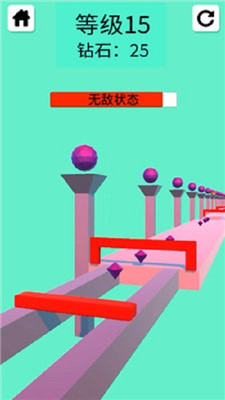 2.游戏中玩家操控的小方块前进的速度会越来越快,更加的刺激,挑战玩家们的反应力。