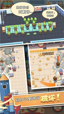 让你在游戏中发泄对老板的不满,用各种武器道具在不同的场景之中穿梭和破坏,只要尽情破坏即可,玩法超级解压,还有各种可爱的破坏特效为你呈现!
