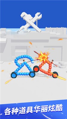 画车对决测试版是一款画车车进行对战的休闲竞技类手游。这款游戏有着非常搞笑无厘头的游戏画面,玩家只需要自己画一辆车就能开打,而车的形状是没有限制的,甚至可以捏成高达哦!站在车上利用长矛与敌人进行对决,需要合理的画出合适的车辆形状,才能更容易获胜。