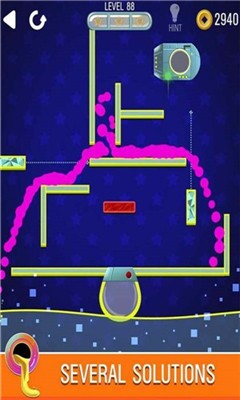 游戏中涵盖了物理的知识和闯关风格,玩家需要利用相应的操作来将游戏中的道具液体都完全的交融在一起,游戏不仅考验玩家的操作还有知识能力。