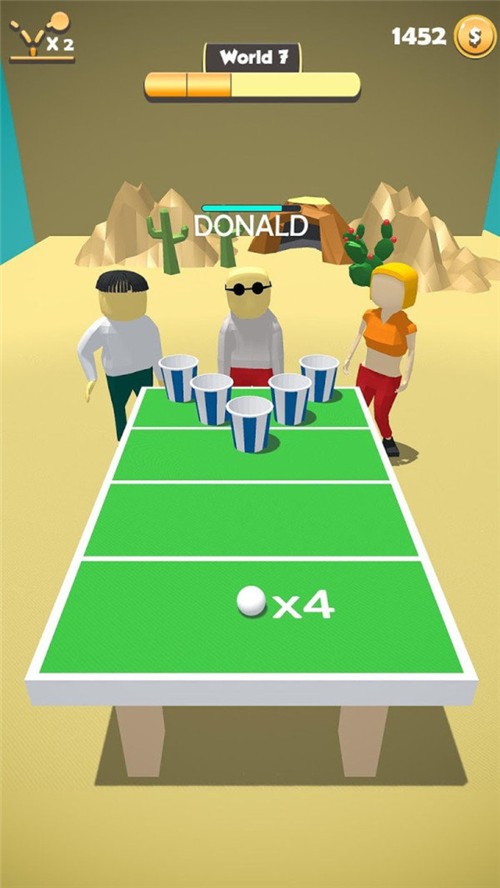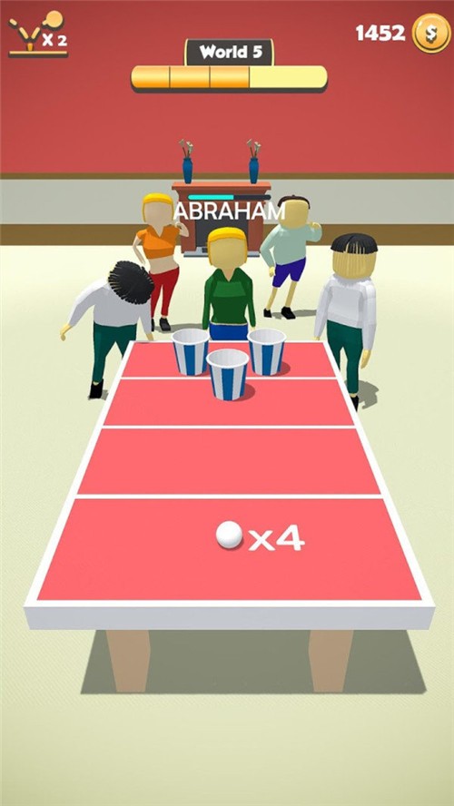 乒乓大挑战游戏是一款手机桌上的休闲游戏,在这个游戏中可不是击打乒乓球进洞的球。而是将白色的球丢到指定的白蓝相间的杯子中,三个玩家轮番进行一个丢掉。丢中即可取得一分,假如丢不中就换下一个。这样如此,在规定的轮回次数中,谁的分数最高,谁就能够取得胜利,快来下载应战吧。
