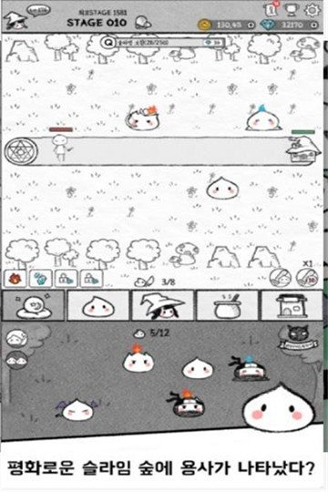 4、每个人在自己所在的位置进行攻击,每一个史莱姆都有自己的技能合防御能力。