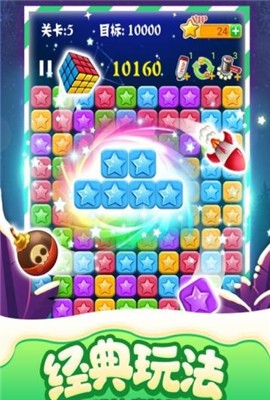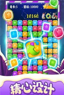 璀璨的钻石,多彩的界面,陪伴着高兴跳动的音符,快捷温暖整个冬日,让生活越发精彩活力,两颗同色星星即可消除,一次消除更多,分数越高。玄妙的道具,让玩法更多种。
