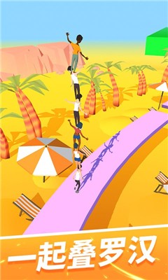 一起叠叠乐是一款十分魔性的休闲益智类游戏,游戏的操作十分的容易,玩家只要不停手就可以轻松的搞定,在这里搭建人梯,你搭建的层数越多,你可以得到的分数也就越多,游戏的环境主题十分的多种,玩家可以随性的展开选择,让自身拥有与众异同的视觉感受。