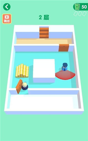 这是一款闯关类的休闲游戏,玩家在游戏中要秘密进入到办公大楼里面,找到钥匙顺利出来,必须保证不被保安发现,一经发现就会被送到警察局,所以玩家要时刻掌握保安的行踪,完美避开保安防止被抓,整个过程紧张又刺激。