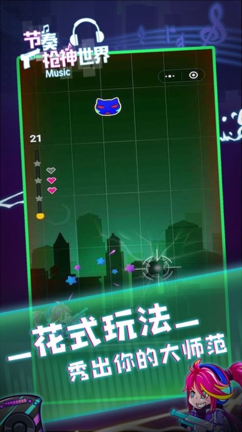 1、需要用你手中的武器,将所有出现的音符给击碎。随着音乐节奏的变快。