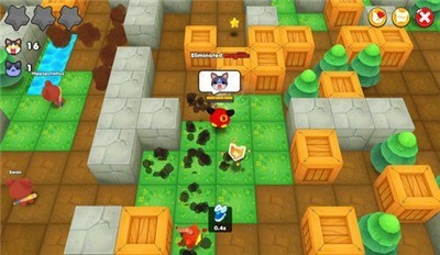 2、游戏中能够与好友一同对战,在游戏中相互投掷炸弹,看看谁能够赢下游戏胜利。