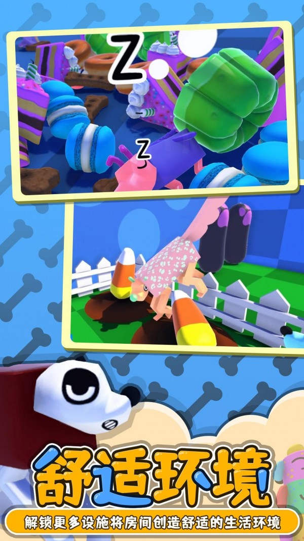 玩家可以建造和装饰自己的狗狗巢穴,为狗狗提供一个舒适的居住环境。