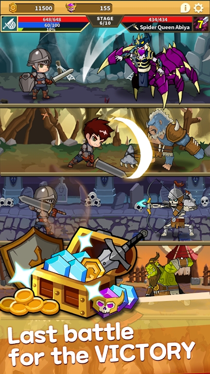 1、玩法非常简单,玩家只需操作帮派人物冒险,通过关卡即可获得金币和钻石。