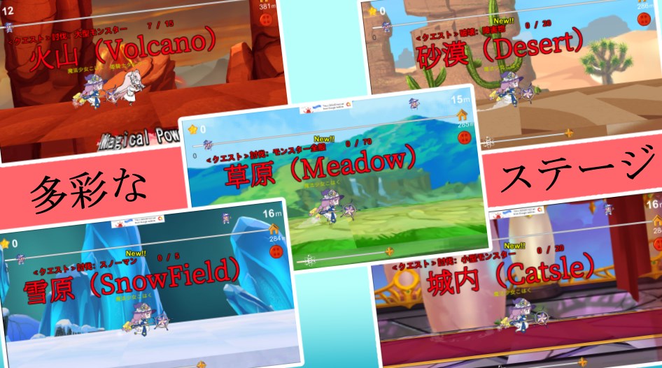 所有玩家角色都是Vtuber!一个简单的跑步游戏,每个人都可以玩!操作独特的 Vtuber击败挡住你去路的敌人,跳过突然出现的悬崖!魔力计积累的话,安全放心的超高速冲刺是可能的!!!