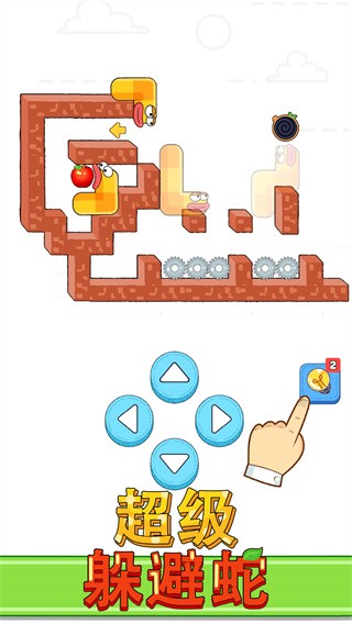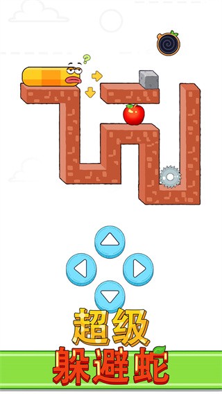 超级躲避蛇是一款非常有趣的休闲闯关游戏,游戏中玩家要控制小蛇朝着苹果的方向移动,途中会遇到各种各样的阻碍,寻找合适的路线,成功达到苹果所在的地方,并吃到苹果就算挑战成功,喜欢的小伙伴快来下载试试吧!