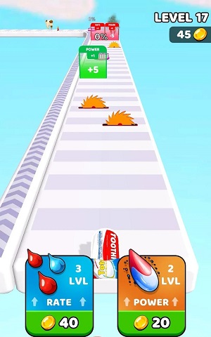 玩家可以通过收集道具来增强牙膏的能力,如加速、跳跃等。