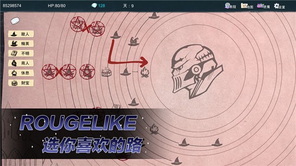 除了战斗之外,还有大量的事件分布在地图中,不同的事件、不同的选择会产生各种意想不到的奖励或处罚。