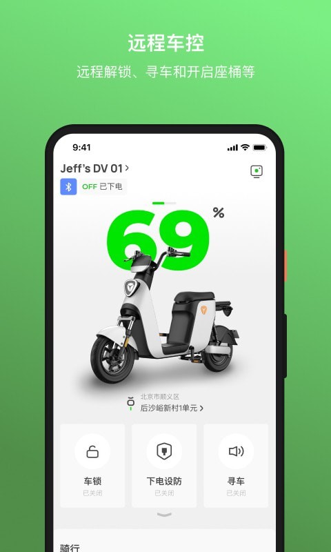用户可以利用软件的远程控制功能,远程解锁、寻车等,提高用车便捷性。